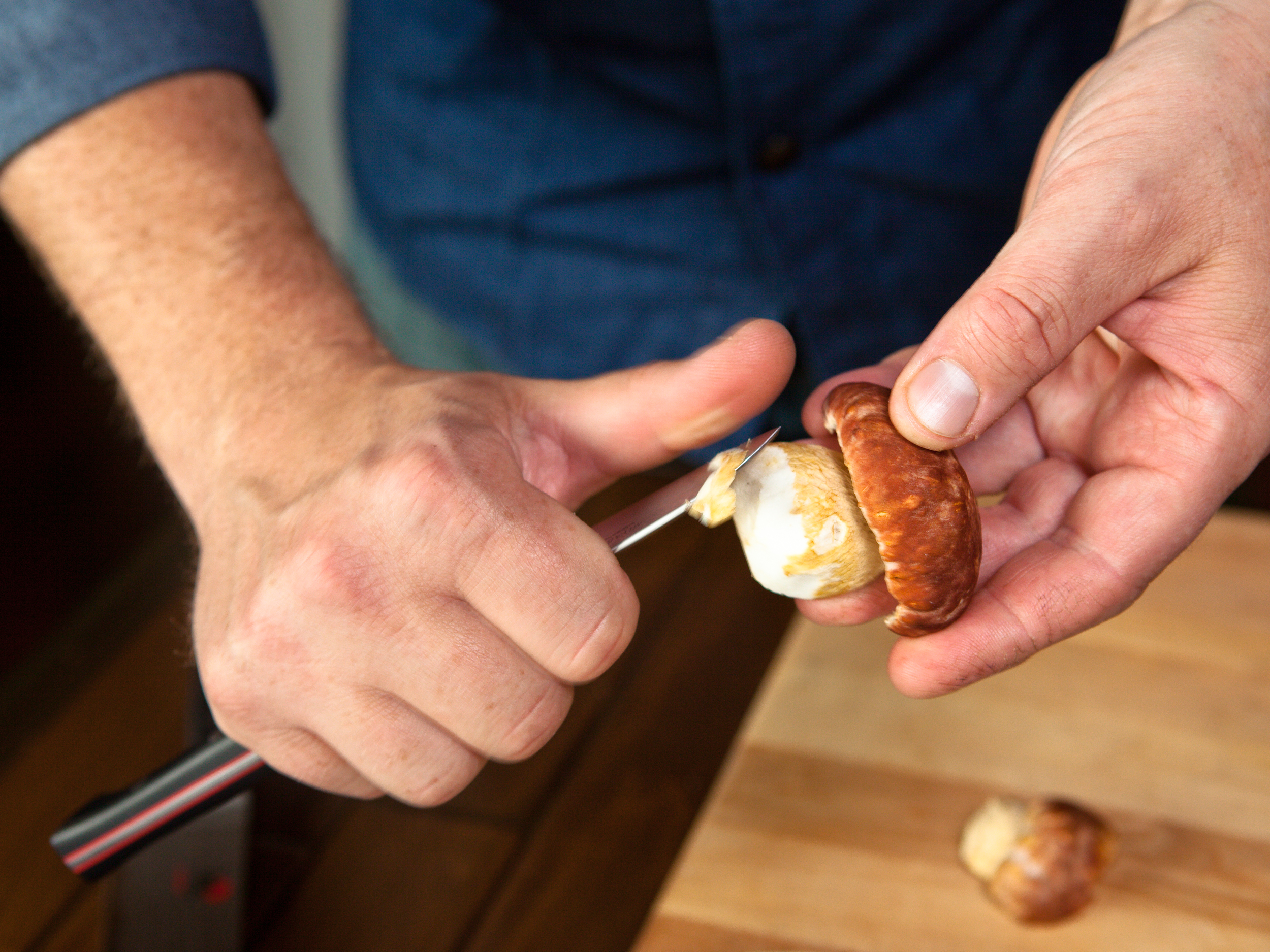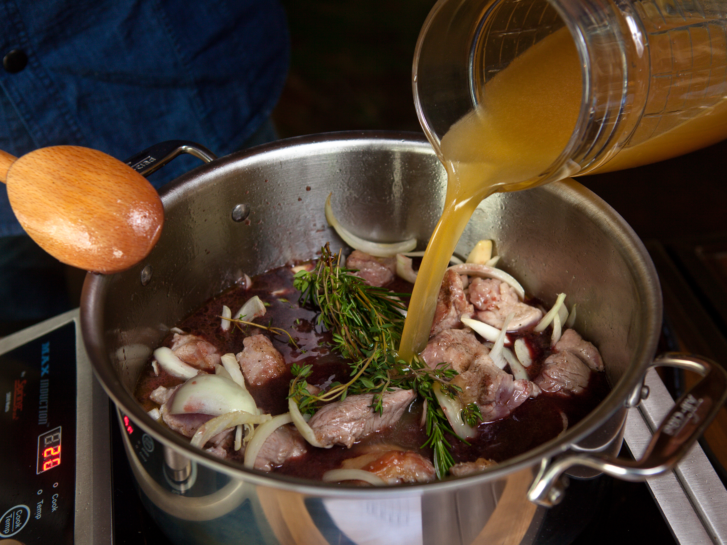 Forebearer to our domesticated hogs, wild boar still thrive throughout Europe, Hawaii, California, and the South. Much of the boar available to restaurants is “raised” on immense game reserves in Texas, free ranging and living wild until time for harvest. Boar meat tends to be lean, but rich and deep in flavor. Often I’ll look to the cuisines of France, Italy, and Eastern Europe when deciding how to prepare wild boar for Lark. This recipe is rich with the flavors of autumn and is worthy of bringing a special bottle of wine up from the cellar, a deep amarone or a favorite Chateau Neuf de Pape.